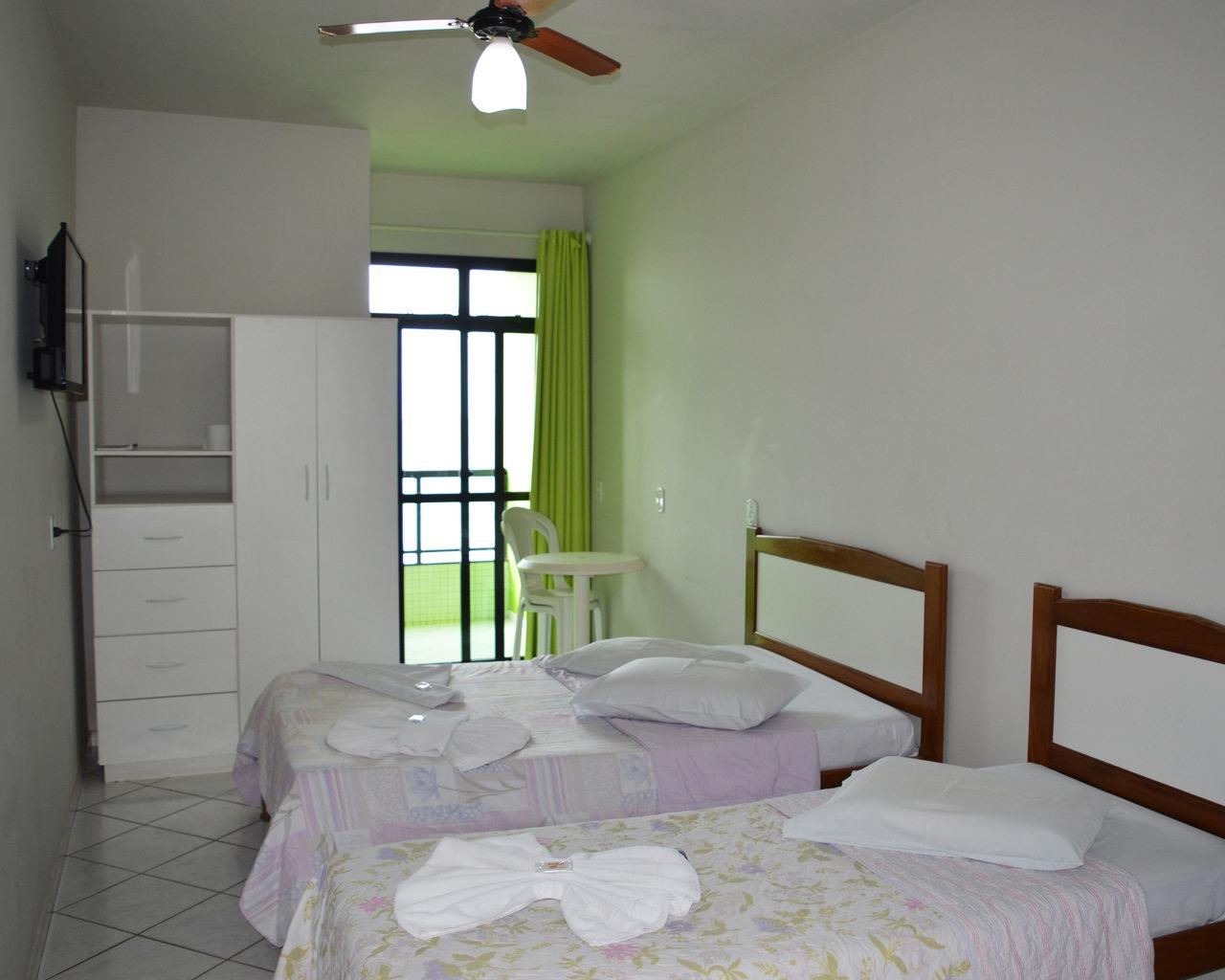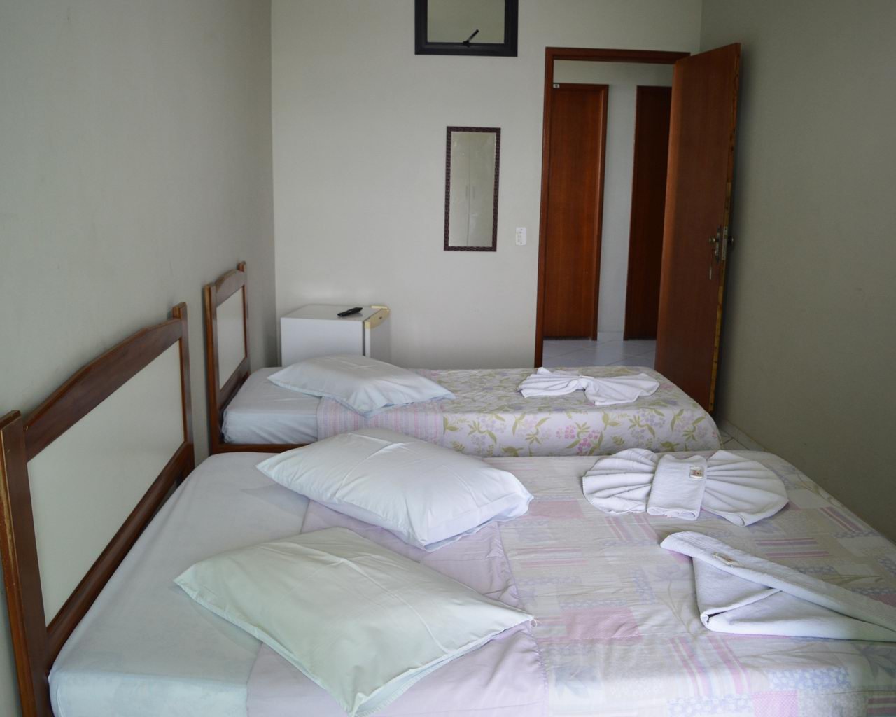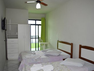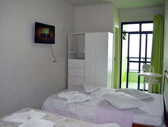 Acomodações Nosso hotel dispõe de 36 apartamentos com banheiro privativo. São equipados com Tv via satélite, ventilador e frigobar.
